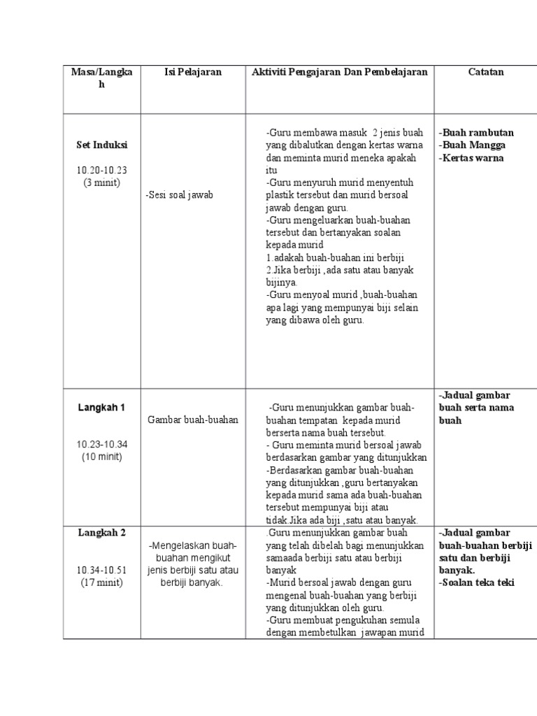 Contoh Rph Matematik Tema Buah-buahan Untuk Tadika